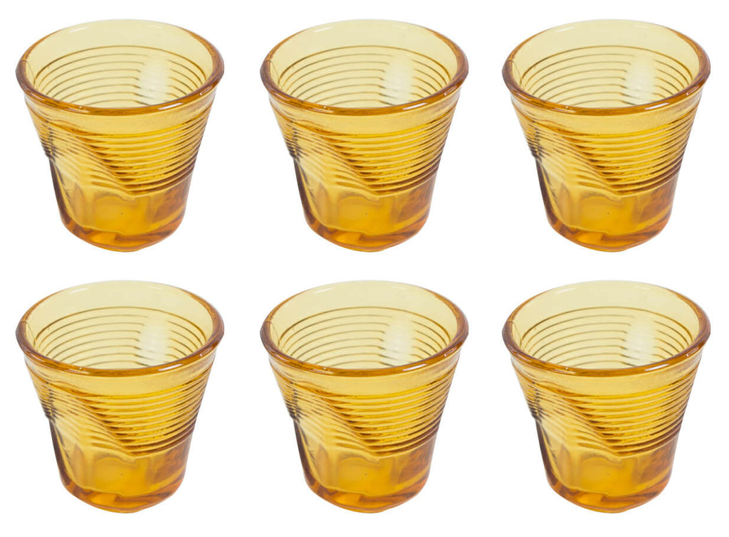 Set 6 Tasses Espresso Froissé Ø6,5 cm en Verre Pressé Miel Kaleidos