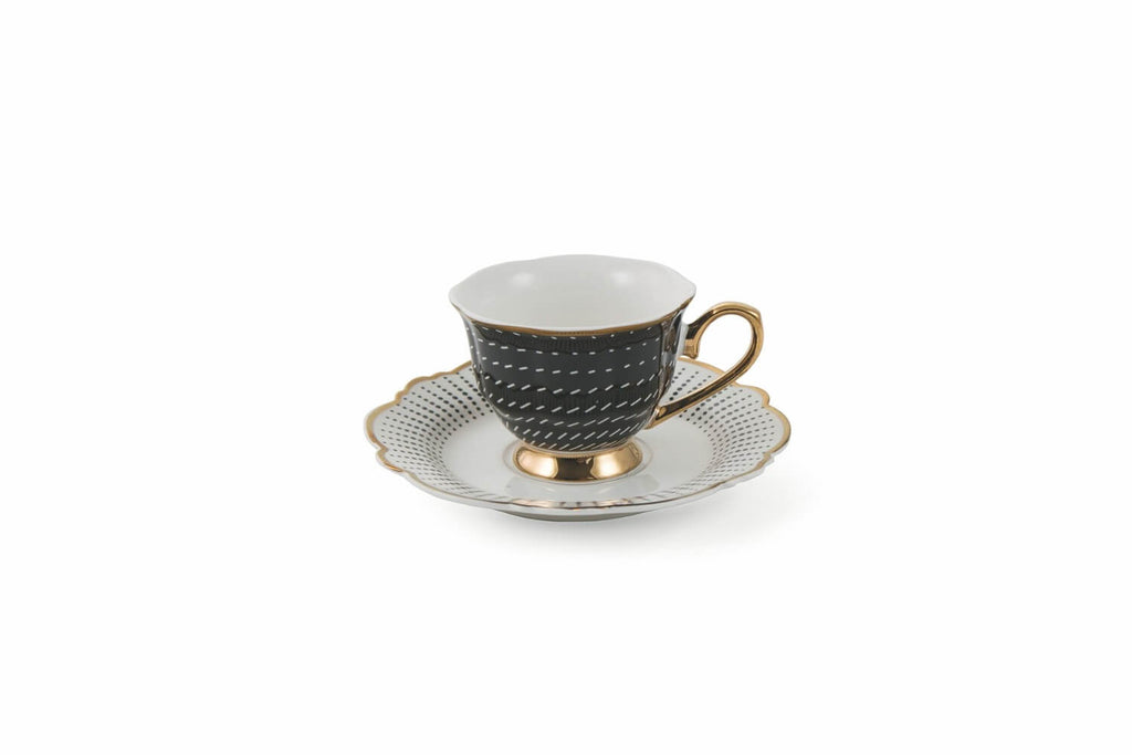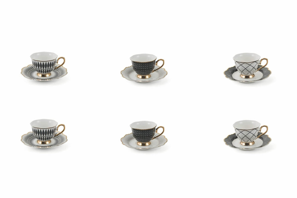 Ensemble de 6 tasses à expresso avec soucoupes Villa d'Este Home Tivoli Wonderland Noir
