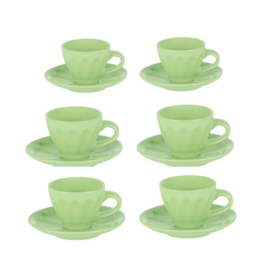 Set de 6 Tasses à Café avec Soucoupe Ø7,5xh4 cm en Grès Cérame Vert Clair Amleto