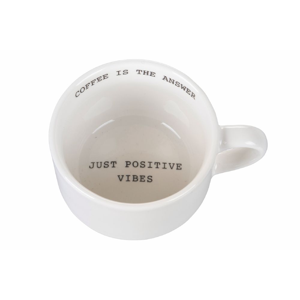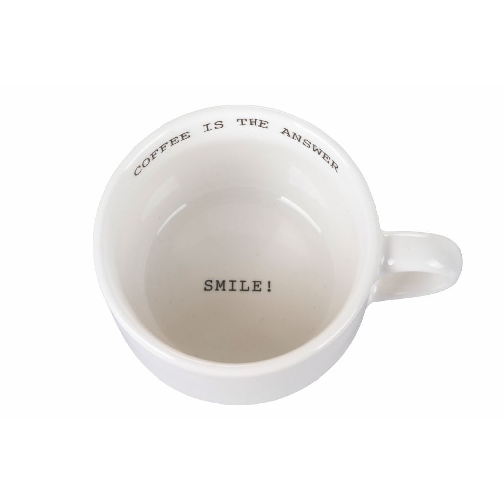Alzi la mano chi non può iniziare la giornata senza caffè! La linea Coffee is the answer ti offre proprio quello di cui hai bisogno per iniziare la giornata con il piede giusto e con la giusta carica di energia. Con le tazzine di questa linea potrai unire la ricarica di caffeina mattutina ad una ricca dose di buon umore. Simpatiche e divertenti, nascondono una sorpresa sul fondo che ti strapperà senz altro un sorriso.