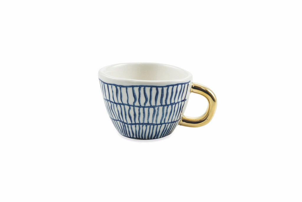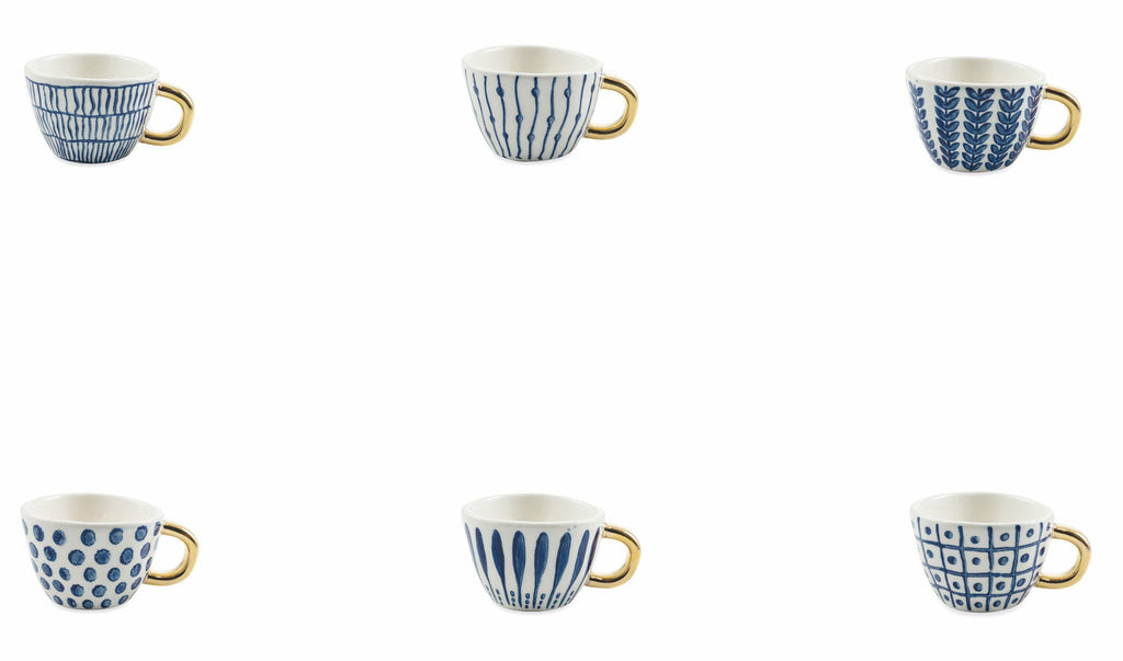 Set de 6 Tasses à Café Ø7x5 cm en Grès Bleu et Blanc VdE Tivoli 1996 Masai