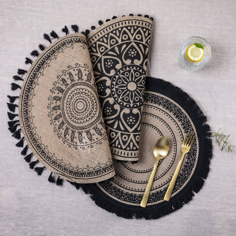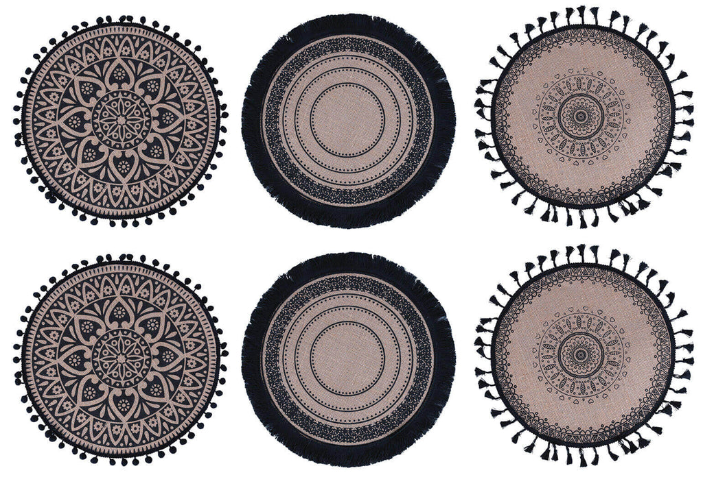 Lot de 6 sets de table Ø38 cm en Jute VdE Tivoli 1996 1996 Noir Noir et Beige
