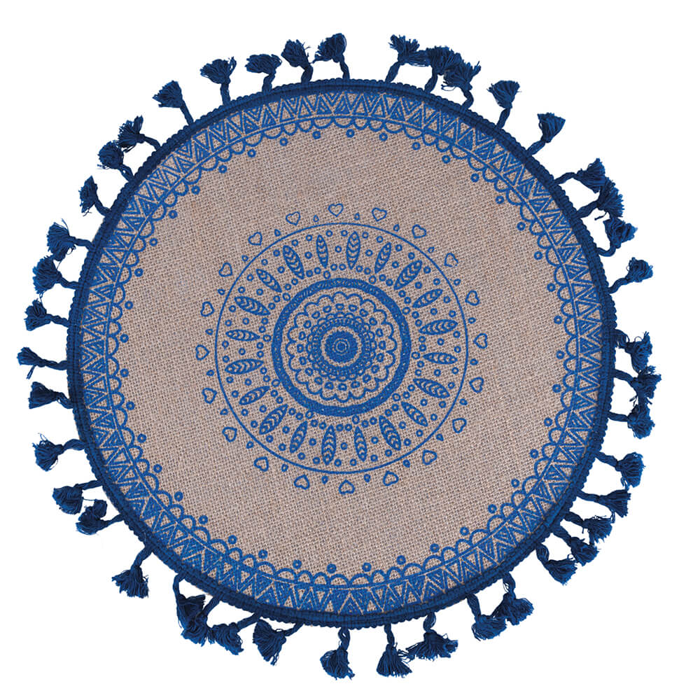 Lot de 6 sets de table Ø38 cm en Jute VdE Tivoli 1996 1996 Bleu Bleu et Beige