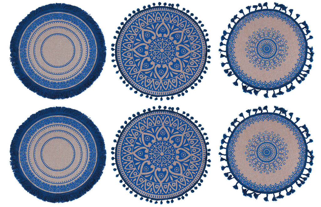 Lot de 6 sets de table Ø38 cm en Jute VdE Tivoli 1996 Bleu Bleu et Beige