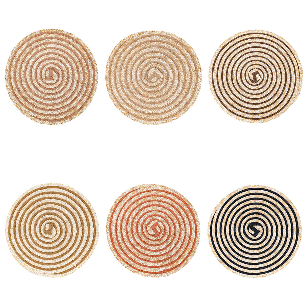 Lot de 6 sets de table Ø38 cm en paille et papier VdE Tivoli 1996 1996 Spirale