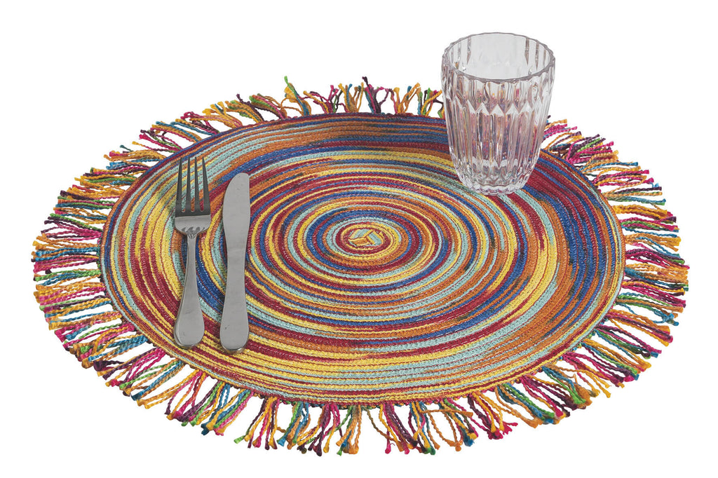 Lot de 6 sets de table ronds Ø44 cm à franges VdE Tivoli 1996 Baita Terra