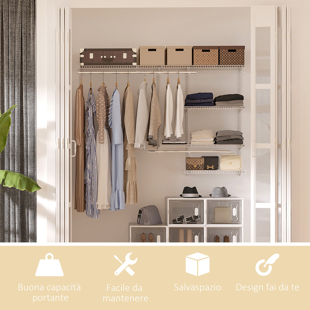 Personnalisez au maximum vos espaces avec le set de cintres. Vous pouvez assembler les 5 étagères et les 3 barres de suspension selon vos besoins, pour garder vos vêtements en ordre et les organiser comme bon vous semble. Fabriqué en acier enduit de poudre, il est robuste et résistant à une utilisation quotidienne. Un ensemble idéal pour organiser vos vêtements dans le dressing et dans de nombreux autres espaces de votre maison.