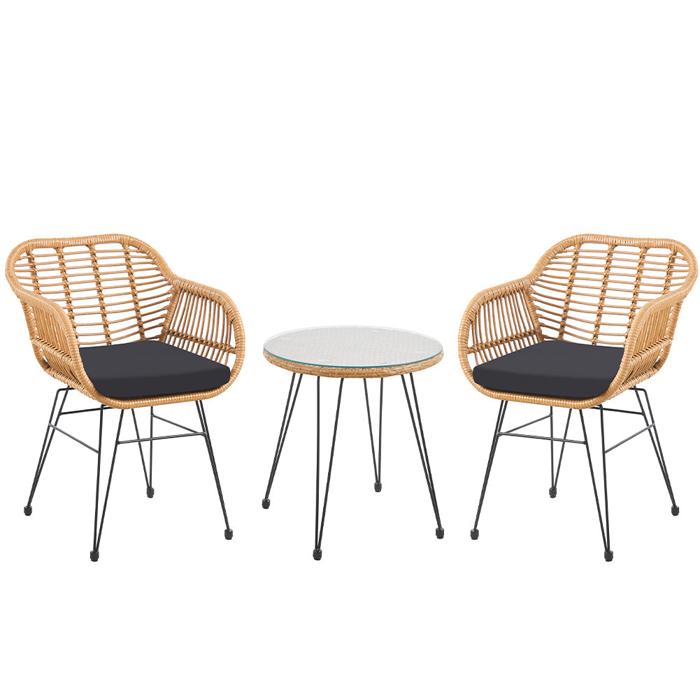 Set Arredo Giardino in Rattan con Tavolino Ripiano in Vetro e 2 Sedie da Esterno
