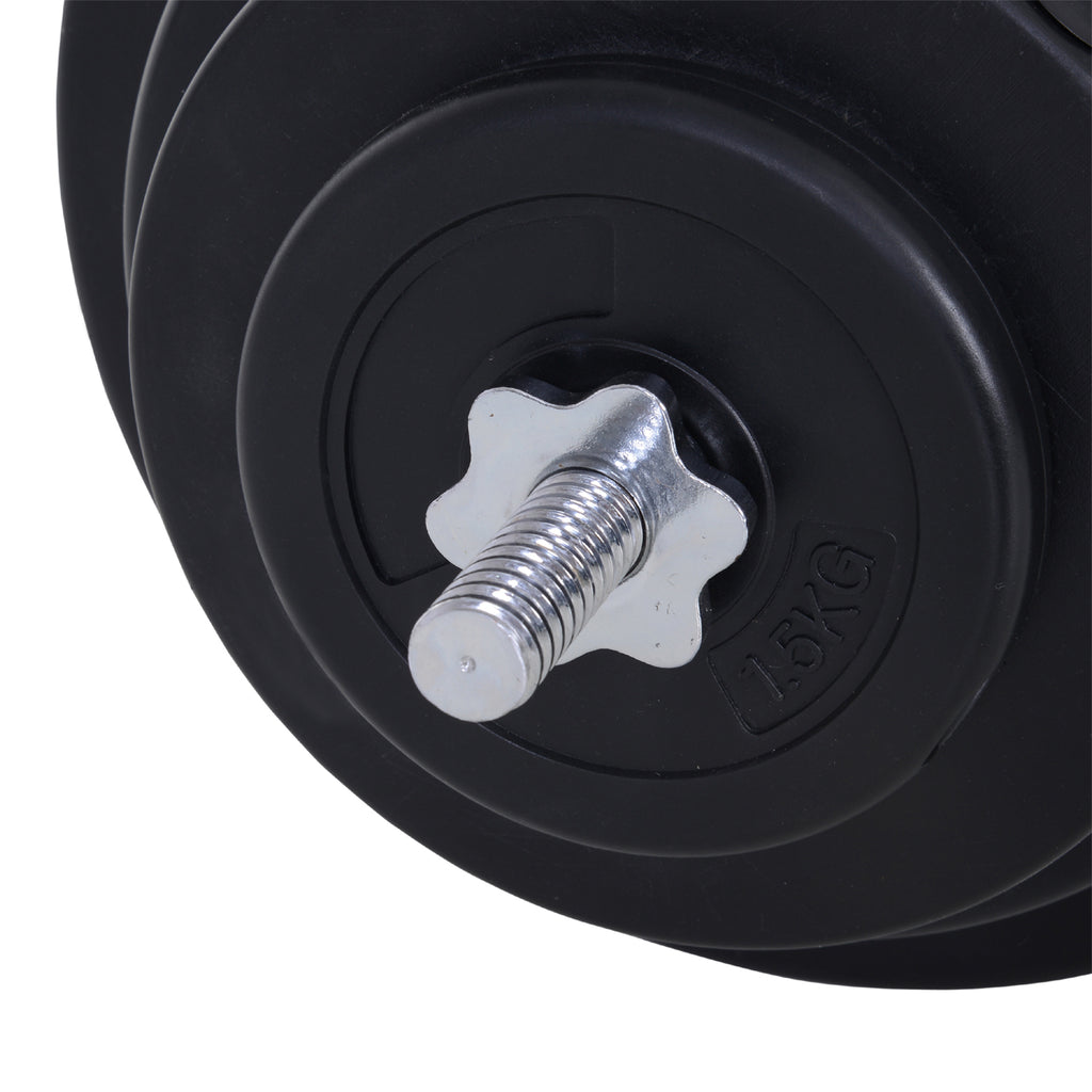 - Inclus : 2 poids de 15 kg, 2 poids de 10 kg, 2 poids de 5 kg, 2 poids de 1,5 kg, 1 barre, 2 clips de verrouillage.