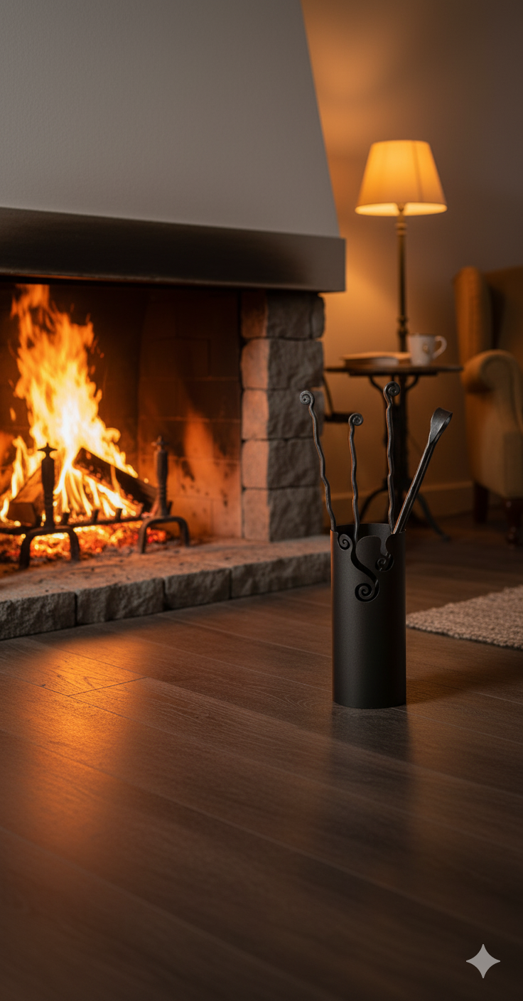 Fût sculpté au laser avec 4 accessoires pour cheminée.