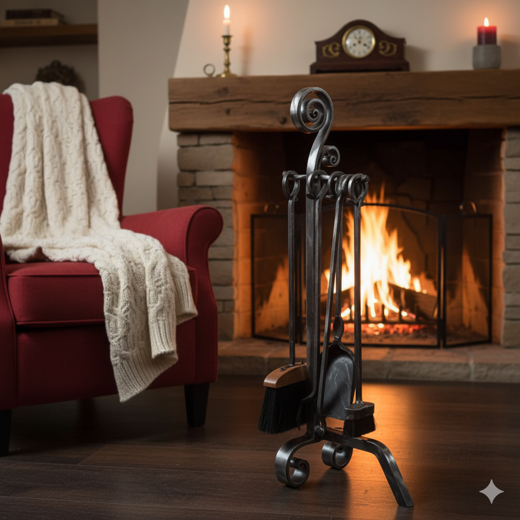 Set Camino 4 Pezzi con Spirale decorativa Forgiato a mano in Ferro Molato