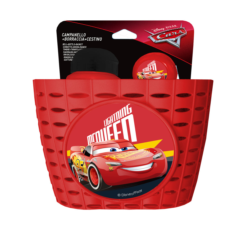 Ensemble panier à bouteille d'eau et sonnette de vélo sous licence Disney Cars