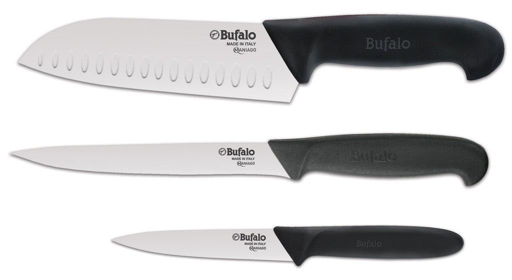 Ensemble de 3 couteaux pour hacher, fileter et éplucher Buffalo Chef Kit manche noir