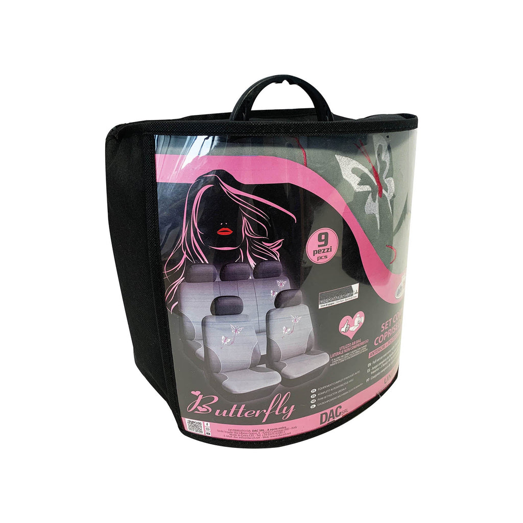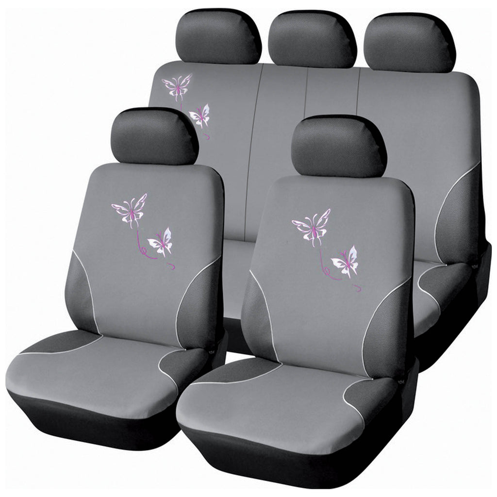 Ensemble de housses de siège avant et arrière universelles en polyester papillon gris et éponge