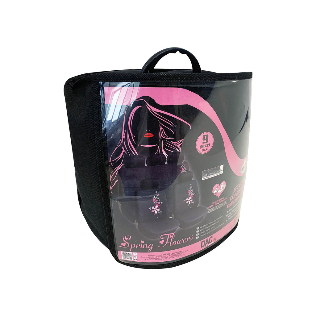 - Le kit comprend 9 pièces : deux housses de siège avant, le coussin et le dossier du siège arrière et cinq housses d'appui-tête.