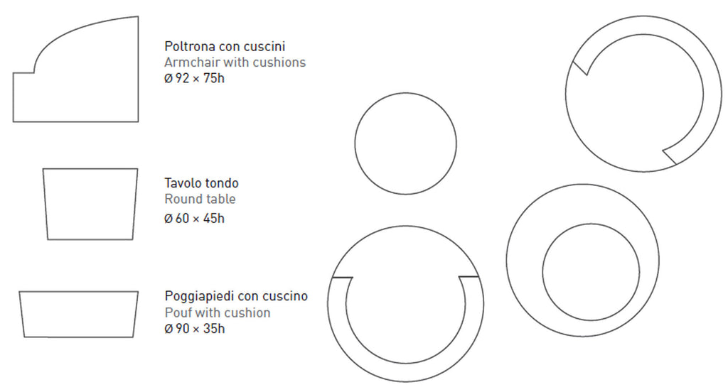 - Dimensions Fauteuil (ØxH) : 92 x 75 cm
