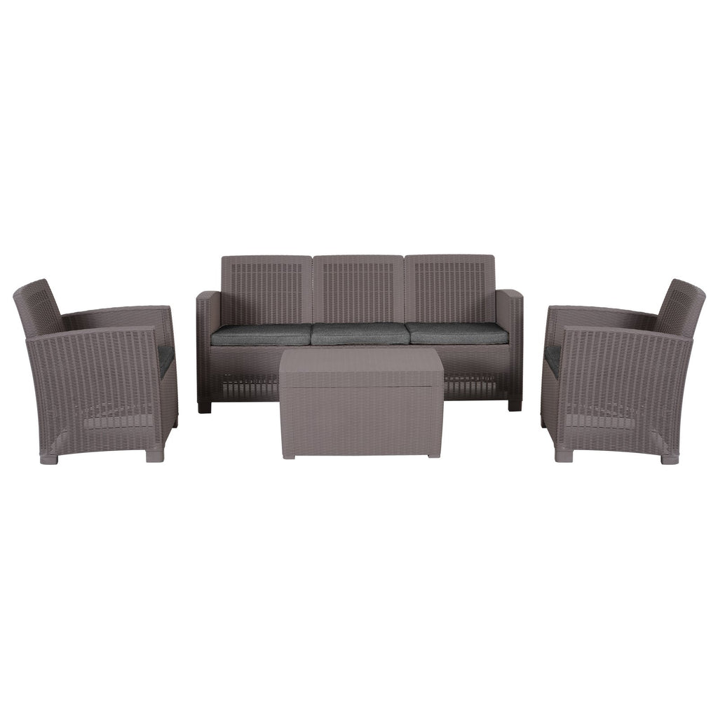 Salon de Jardin Canapé 2 Fauteuils 1 Table Basse Friendly Gris