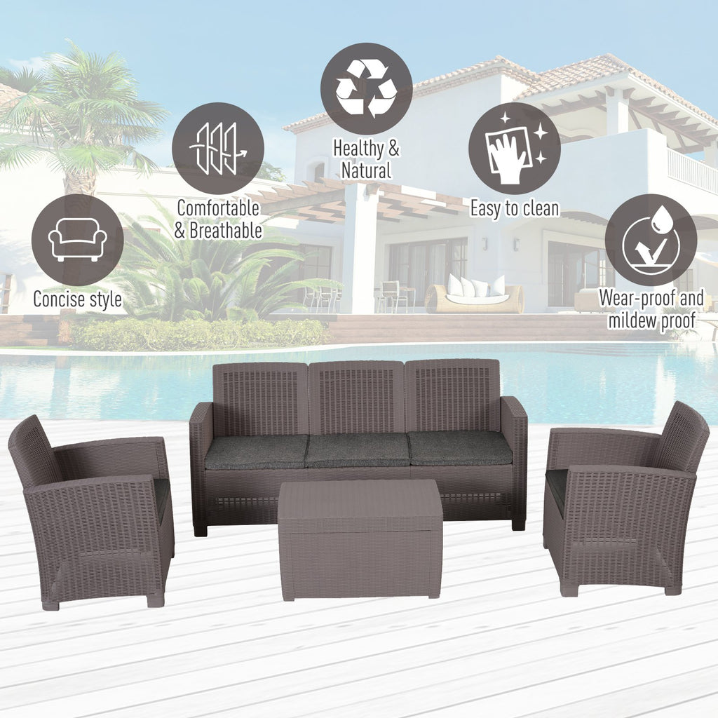 Vous cherchez une solution pratique et confortable pour décorer votre jardin ? Ce fantastique ensemble de mobilier d'extérieur se compose de 4 pièces et est parfait pour décorer vos espaces extérieurs, au meilleur rapport qualité-prix. Construit en PP, un matériau imperméable et résistant, il comprend une table de rangement, 2 fauteuils et un canapé 3 places. Qu'attendez-vous pour vous offrir de longues journées en plein air dans votre nouveau salon d'extérieur cet été !