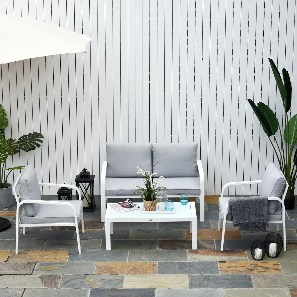 Salon de Jardin Canapé 2 Fauteuils et Table Basse en Aluminium Blanc et Gris