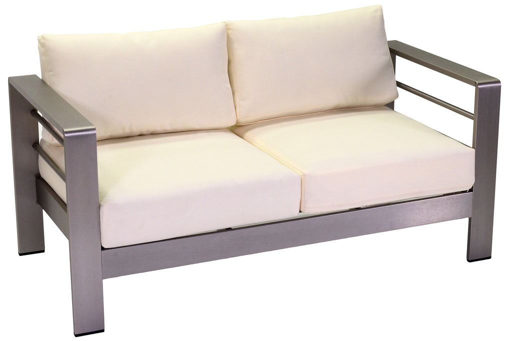 Salon de Jardin Canapé 2 Fauteuils et Table Basse en Aluminium Argent Buffle Mat