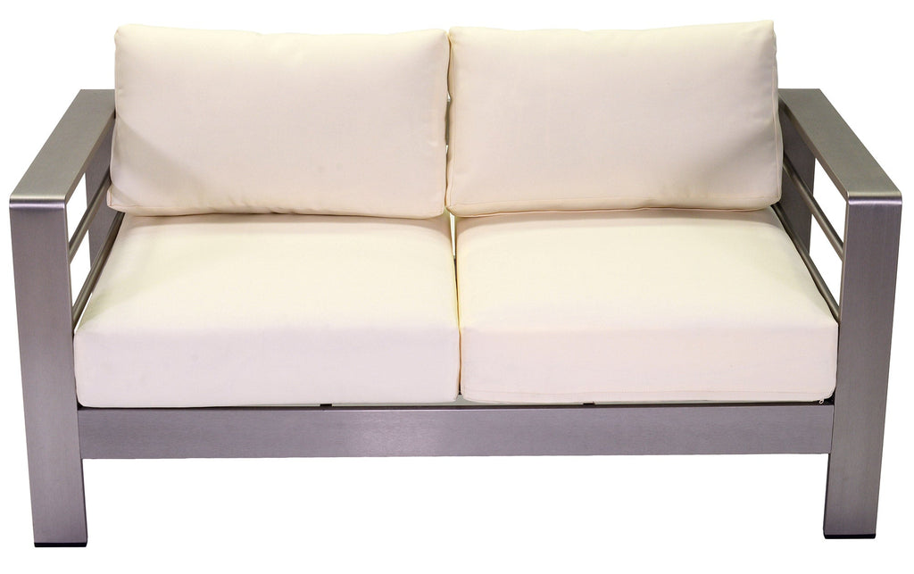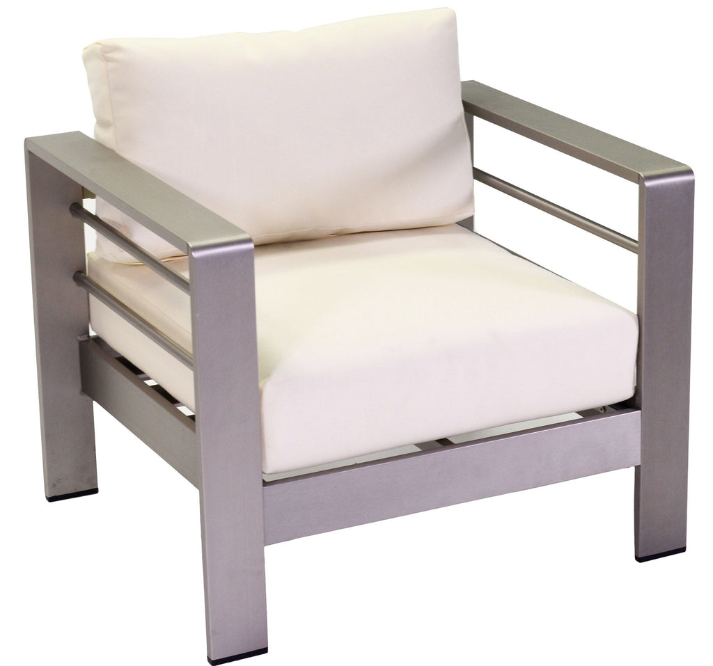 Ensemble de jardin canapé 2 fauteuils et table basse en aluminium anodisé argent buffle mat