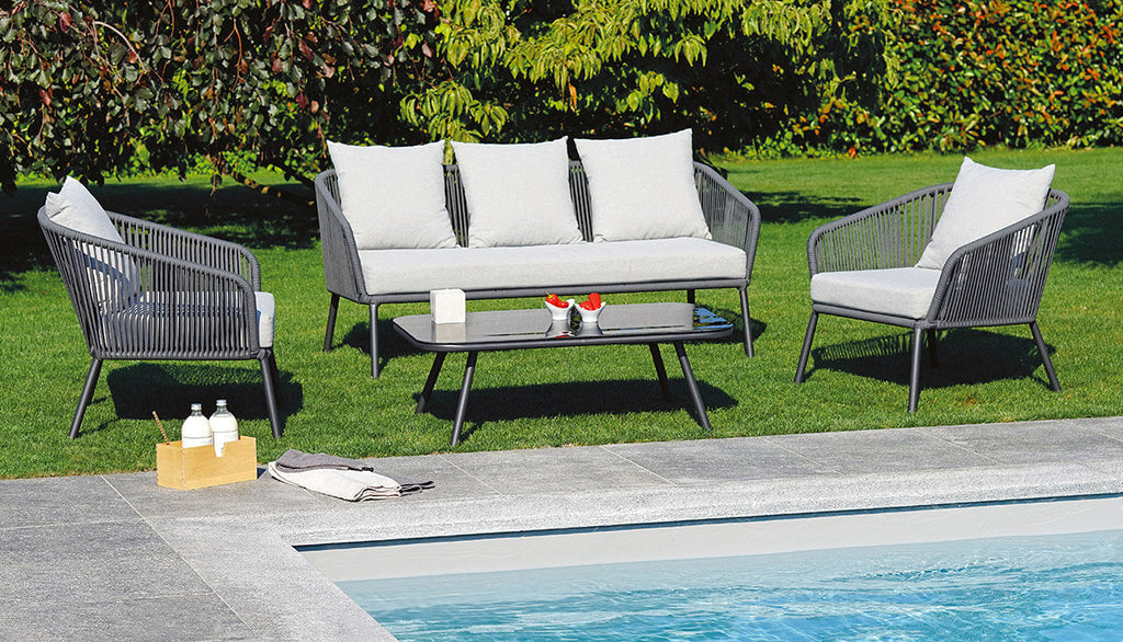 Salon de Jardin Canapé 2 Fauteuils et Table Basse en Aluminium Vorghini Pontremoli Gris