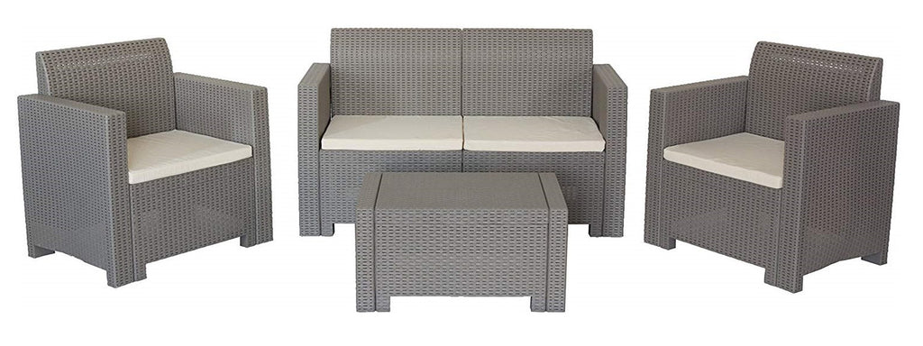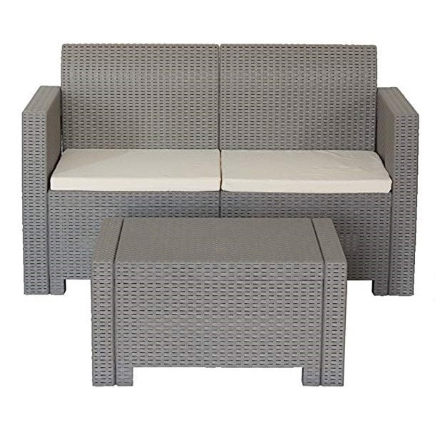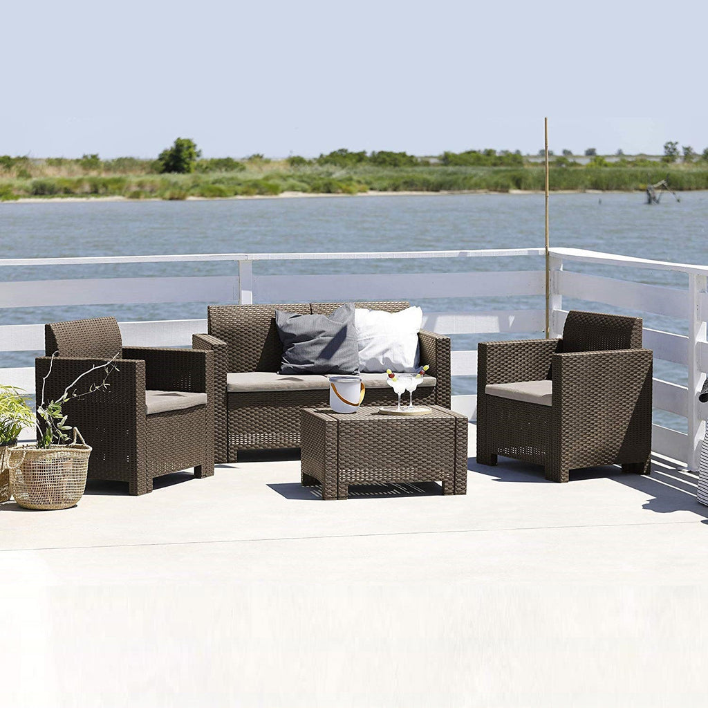 Ensemble de jardin canapé 2 fauteuils et table basse en polypropylène taupe