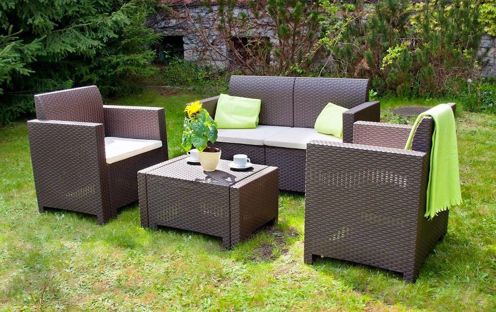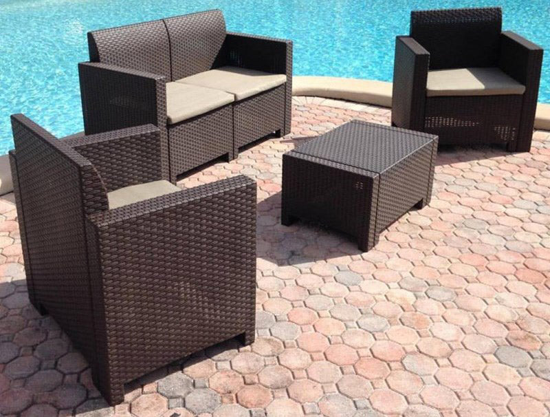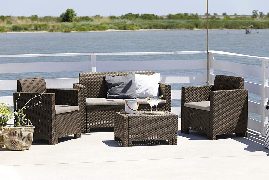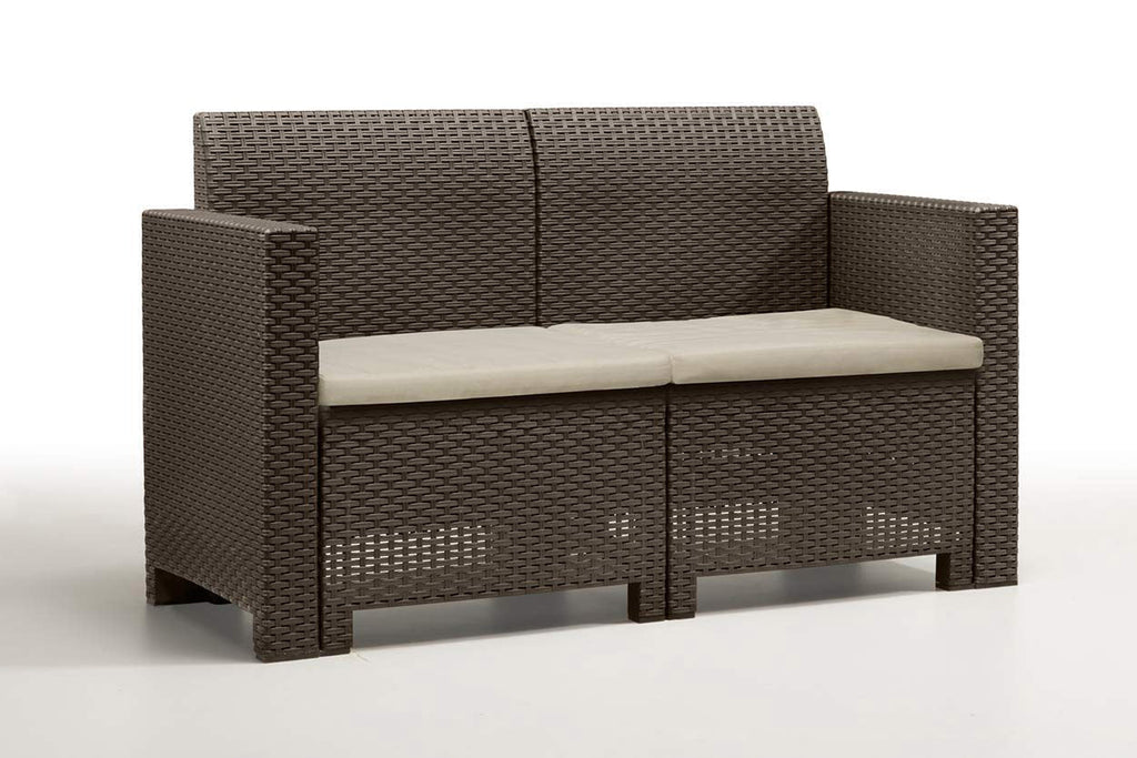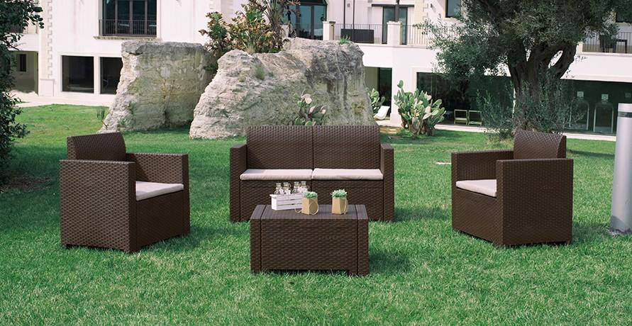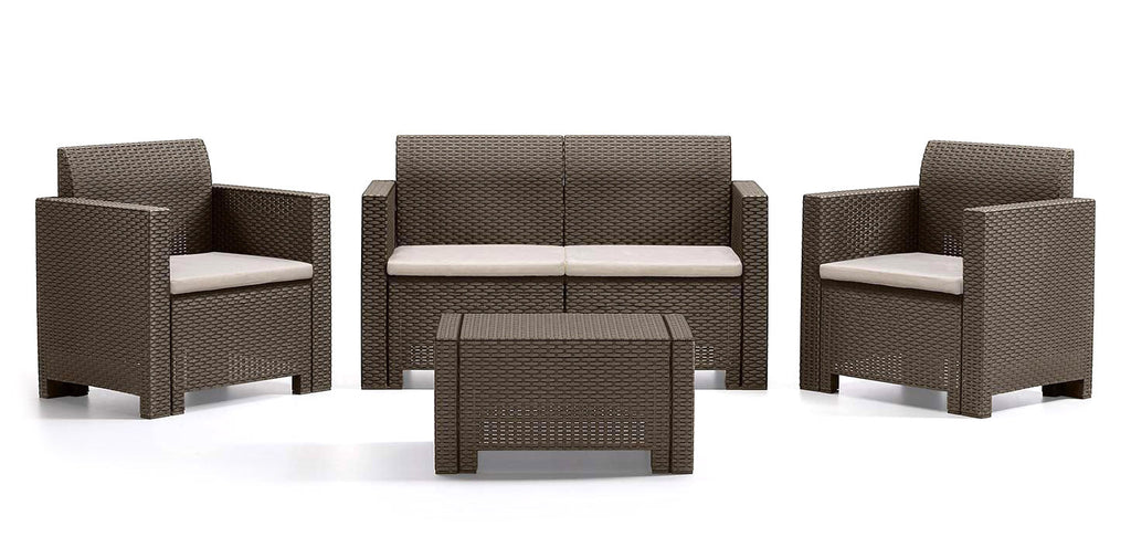 Salon de jardin canapé 2 fauteuils et table basse en polypropylène marron Vandi