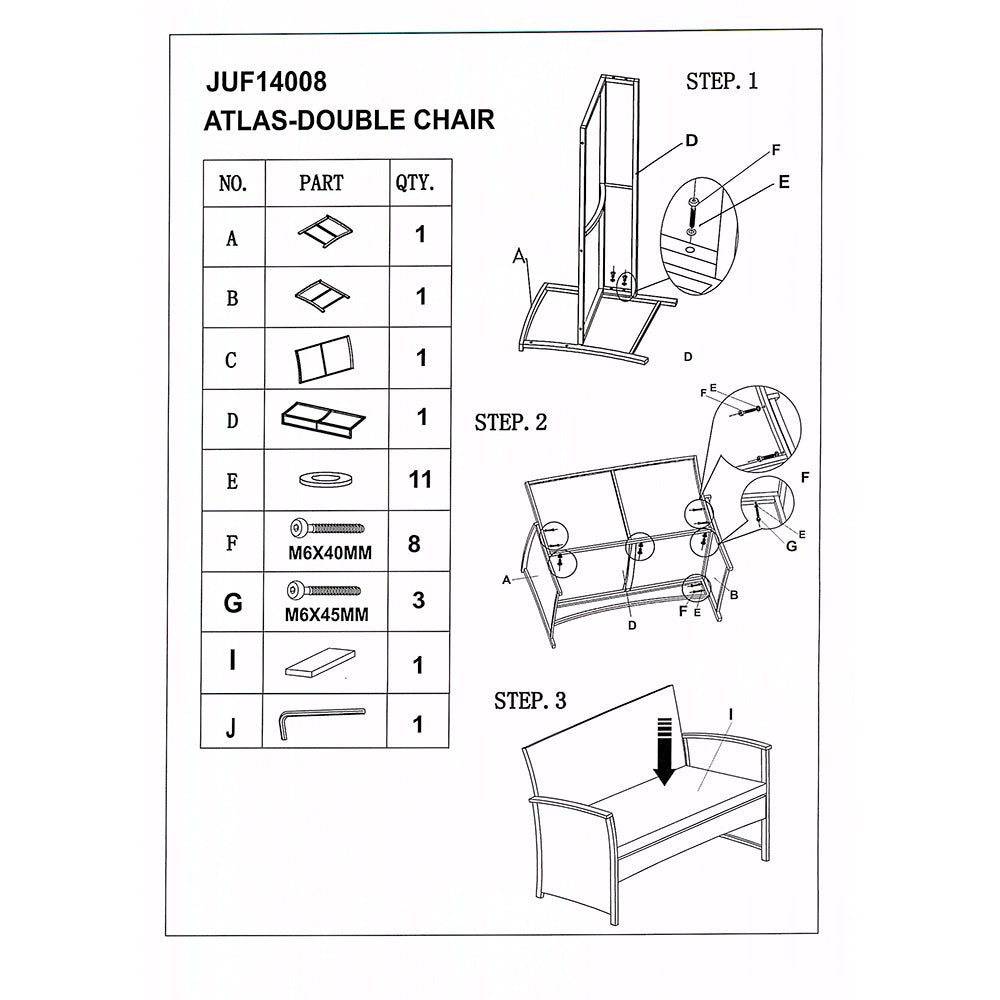Caractéristiques Techniques Ensemble de Jardin Canapé 2 Fauteuils et Table Basse en Polyrotin Gris Adami Detroit