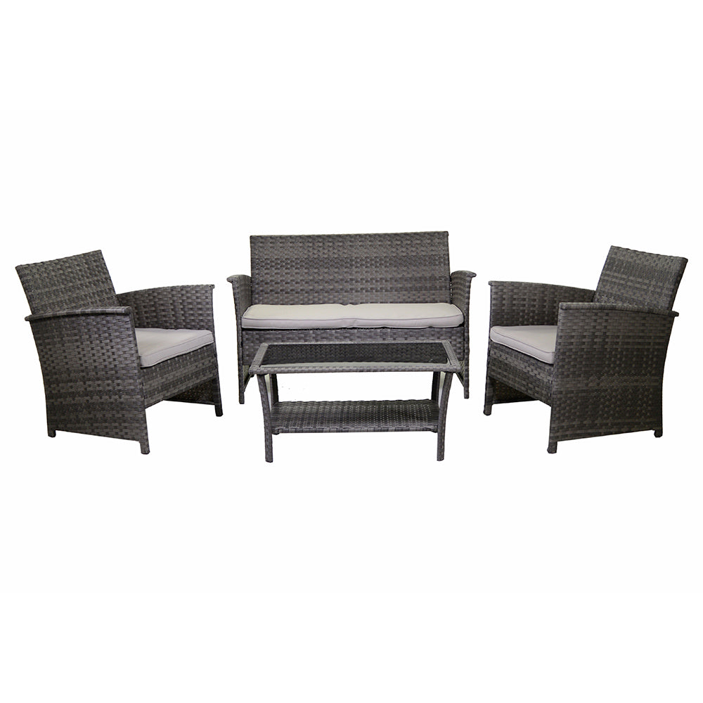 Ensemble de jardin canapé 2 fauteuils et table basse en polyrotin gris Adami Detroit