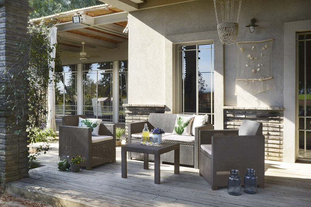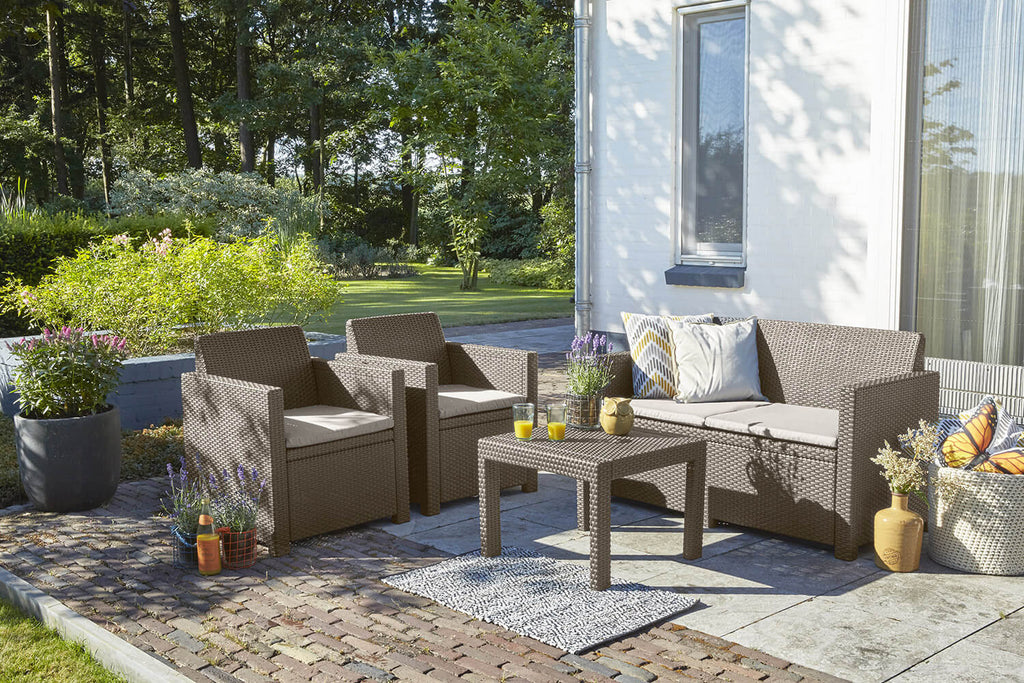 Salon de Jardin Canapé 2 Fauteuils et Table Basse en Résine Keter Alabama Lounge Cappuccino