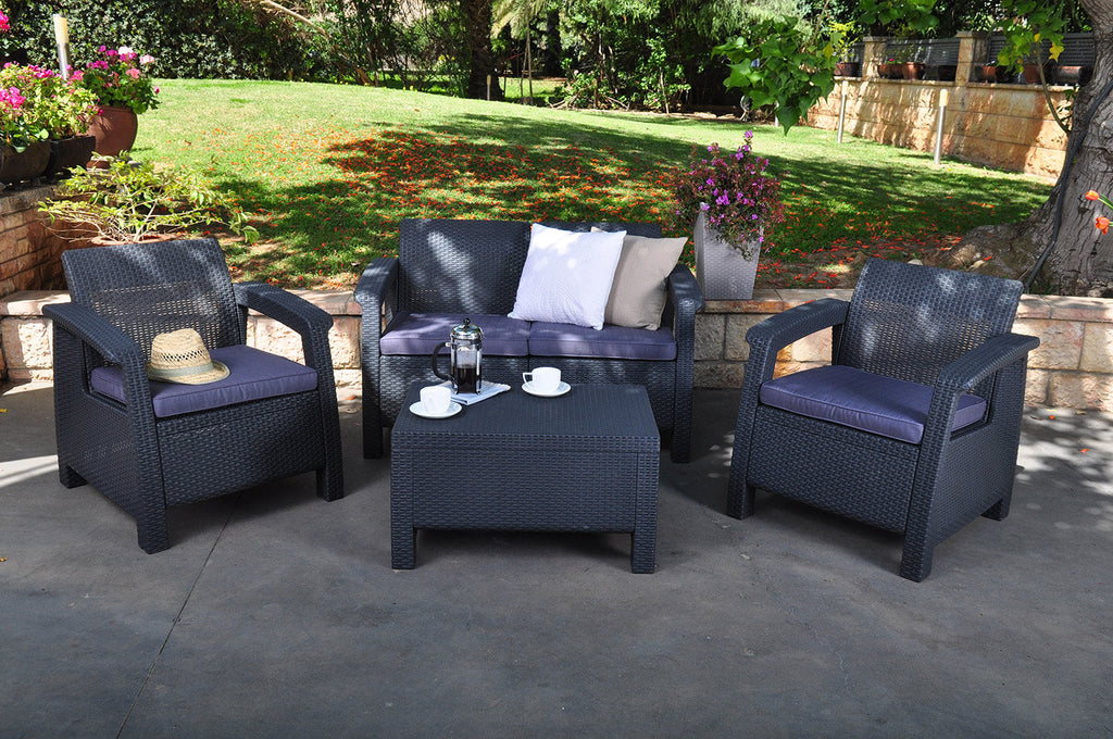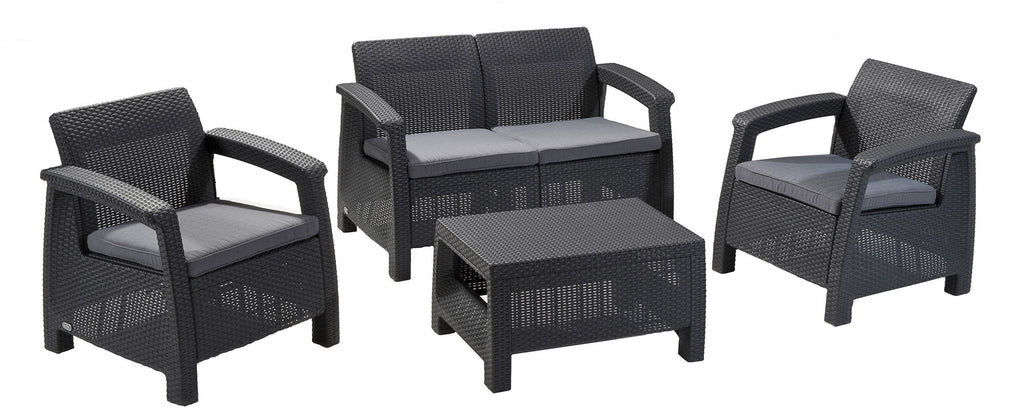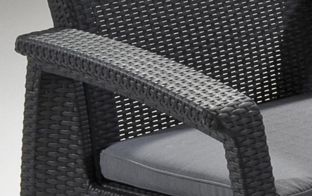Salon de Jardin Canapé 2 Fauteuils et Table Basse en Résine Keter Corfu Lounge Anthracite