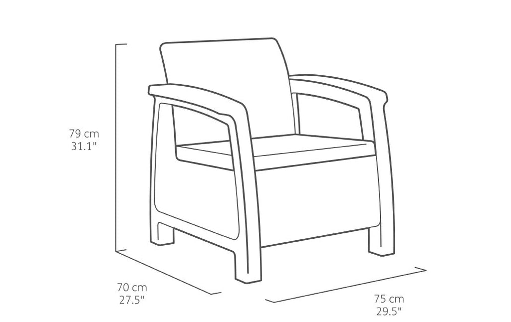 - Dimensions du fauteuil : 75 x 70 x 79 h cm