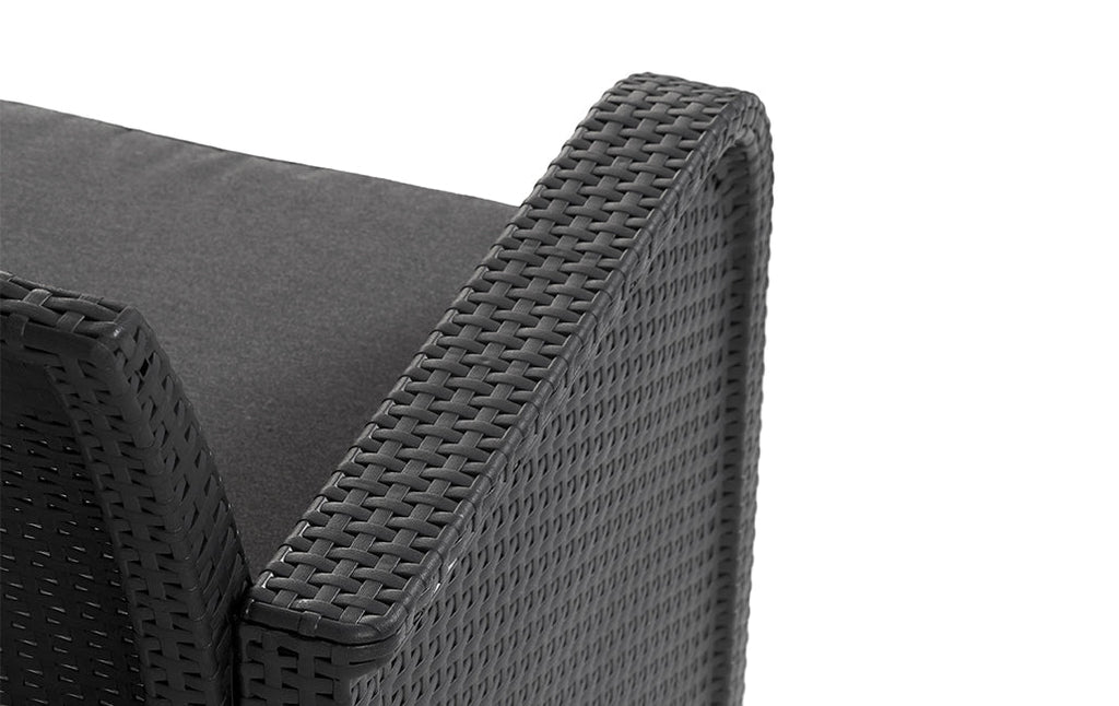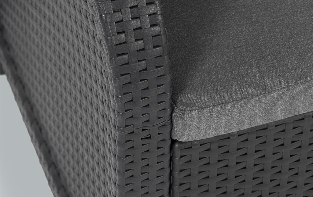 Transformez votre terrasse, balcon ou cour avec l'ensemble de salon Rosalie de Keter. Avec des bras ronds et un dossier ergonomique, Rosalie a une apparence douce et conviviale. Les coussins inclus donnent à cet ensemble douillet une touche de confort supplémentaire lors de vos moments de détente. Avec cette table de rangement vous pourrez ranger vos coussins secs et propres. L'ensemble Rosalie Lounge offre un confort personnalisable pour n'importe quel espace extérieur sans compromettre la qualité. Construit avec des matériaux durables, nécessitant peu d’entretien et résistants aux intempéries.