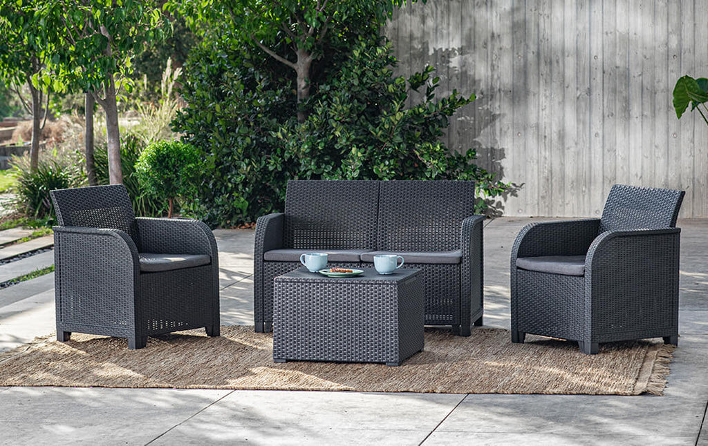 Salon de Jardin Canapé 2 Fauteuils et Table Basse en Résine Keter Rosalie Lounge Anthracite