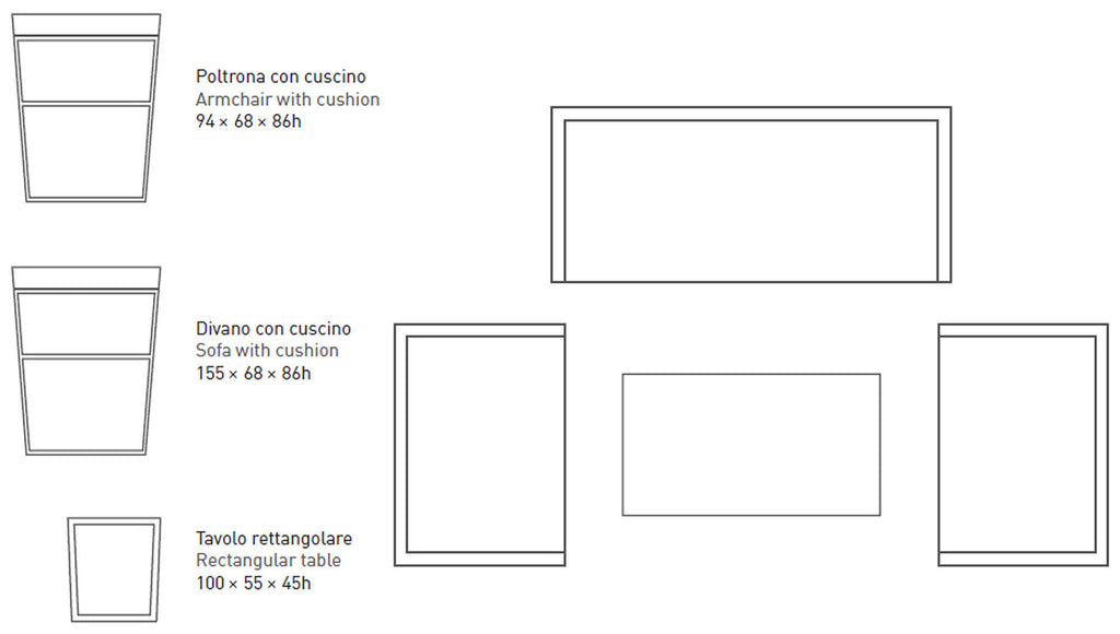 Caractéristiques Techniques Ensemble de Jardin Canapé 2 Fauteuils et Table Basse en Maille Étirée Royal Ranieri
