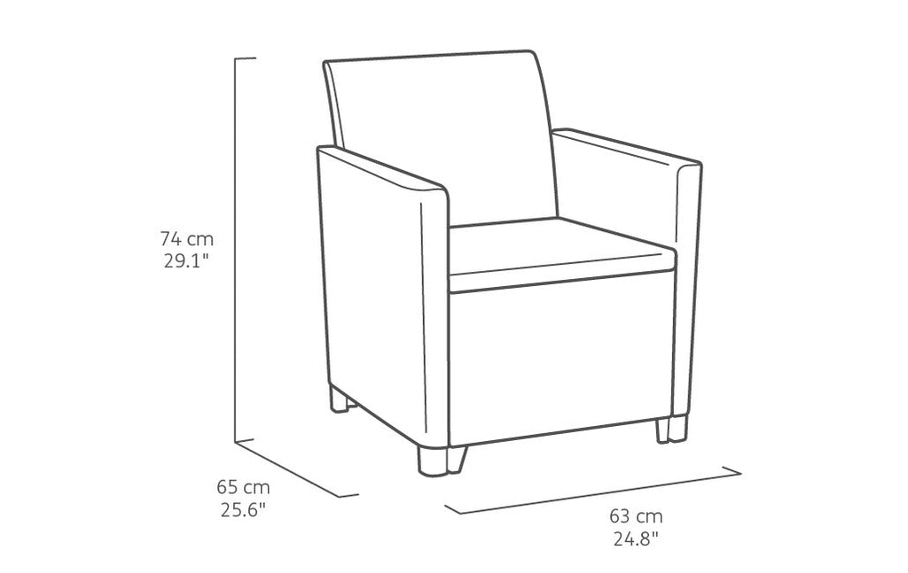 - Dimensions du fauteuil (LxPxH) : 63x65x74h cm
