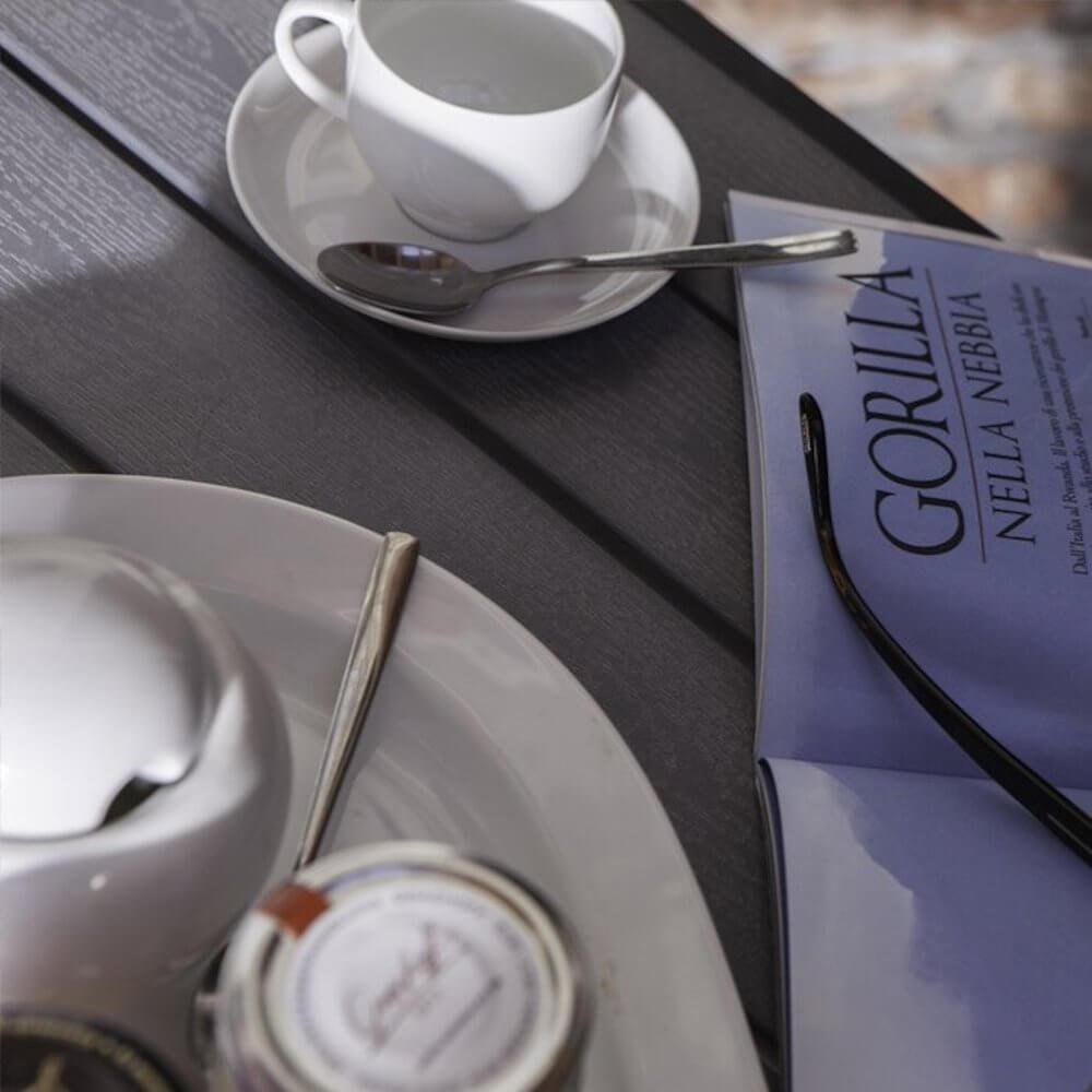 Ensemble en métal peint et polywood, deux matériaux polyvalents et robustes.