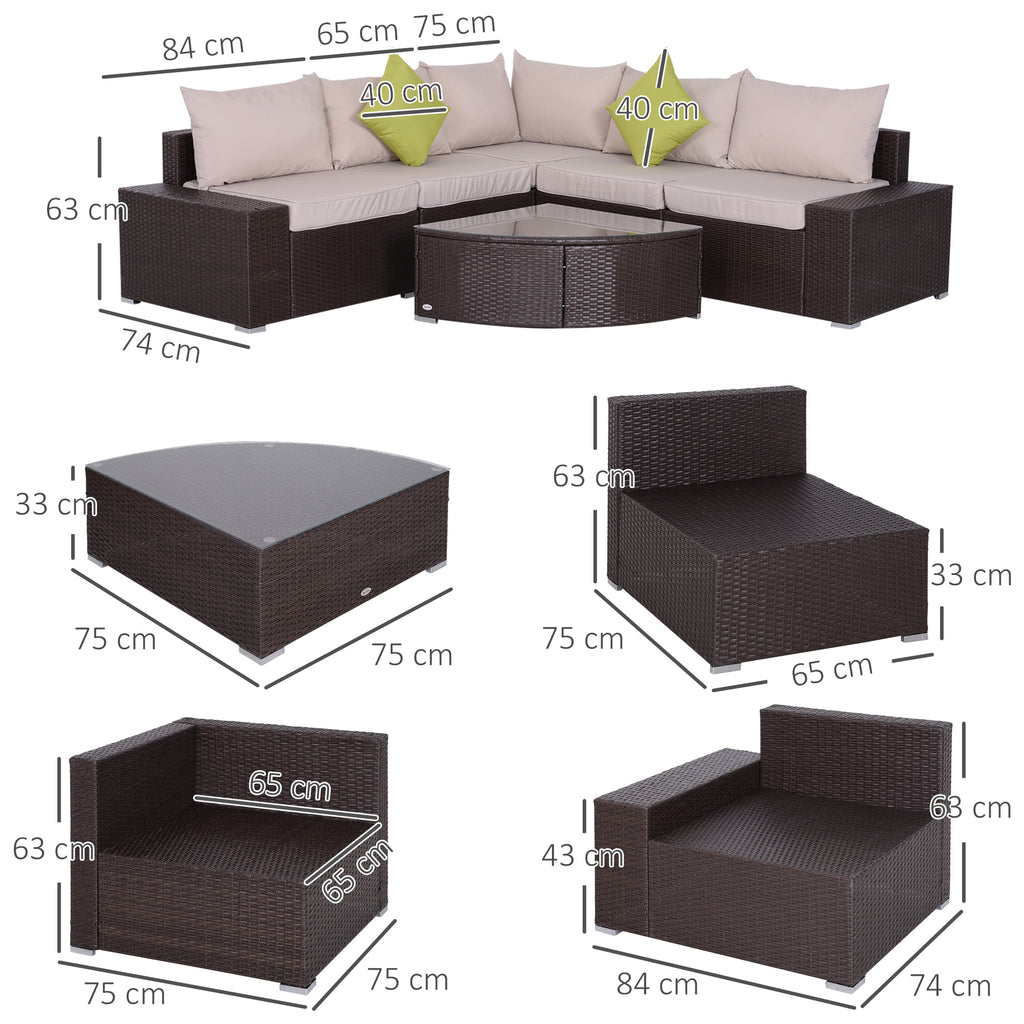 Ensemble canapé d'angle et table basse de jardin en rotin marron