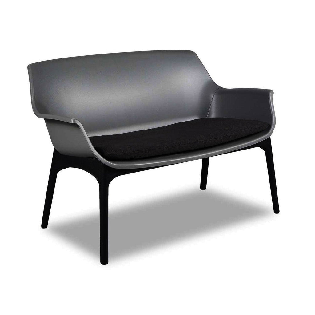 Entièrement réalisé en polypropylène bicolore, il se caractérise par son assise accueillante, confortable et enveloppante, finement complétée par des coussins moelleux déhoussables dans la même teinte que le salon, d'une épaisseur de 6 cm. L'ensemble est également équipé de pieds en caoutchouc antidérapants.