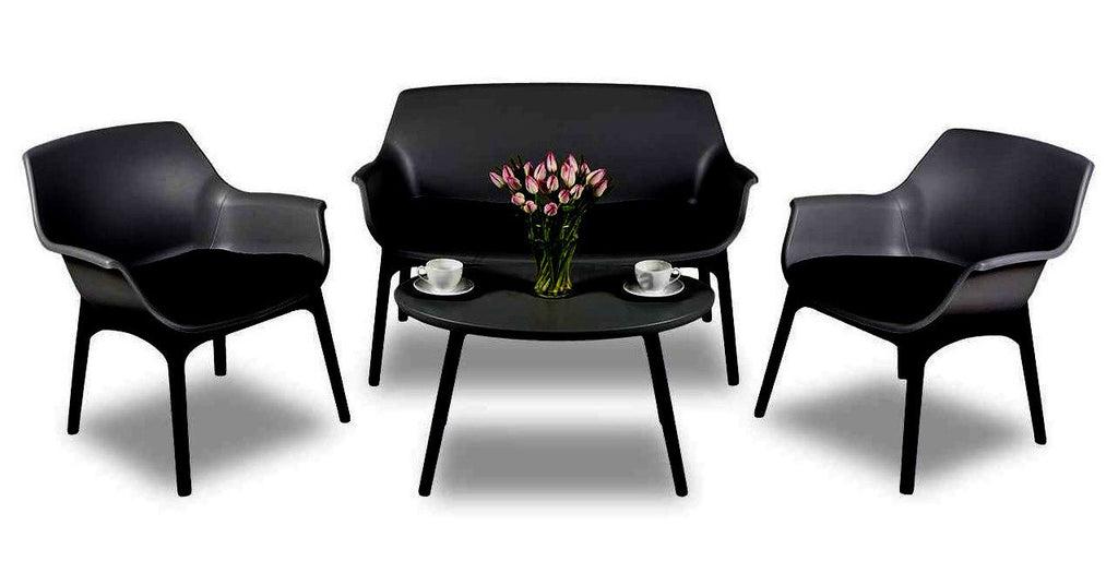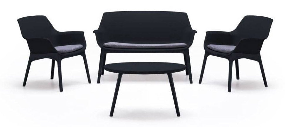 Ensemble de jardin canapé fauteuils et table basse en polypropylène graphite