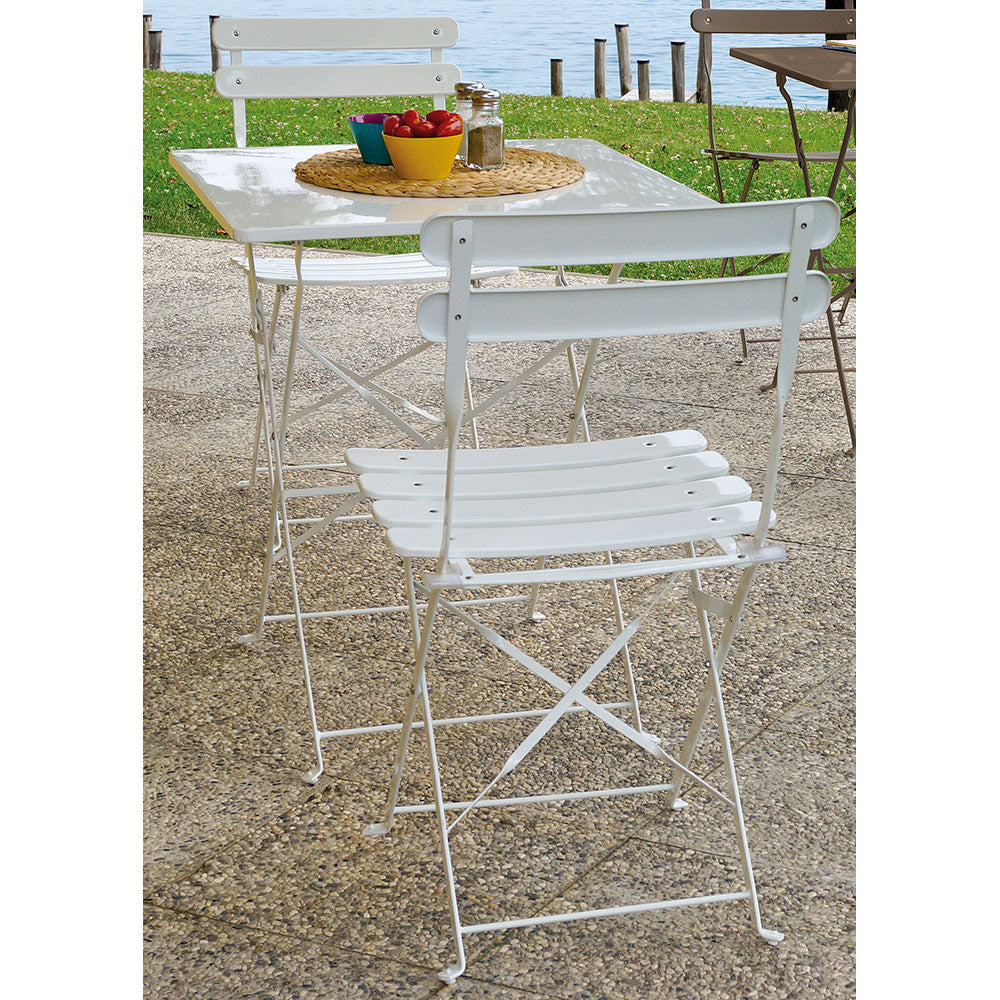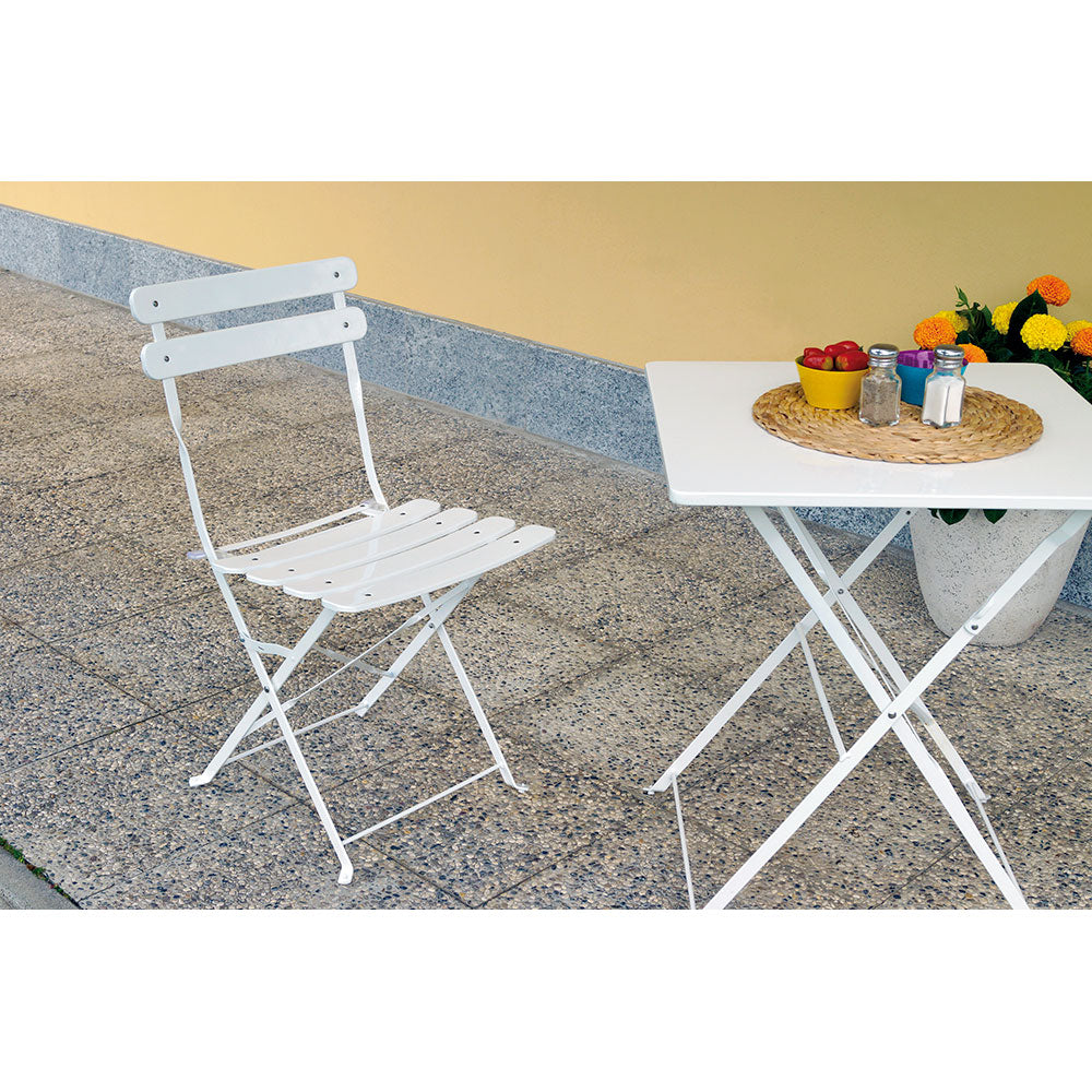 Salon de Jardin Ensemble 1 Table 2 Chaises Pliantes en Fer 60X60cm Vorghini Ivoire Carré Bistrò
