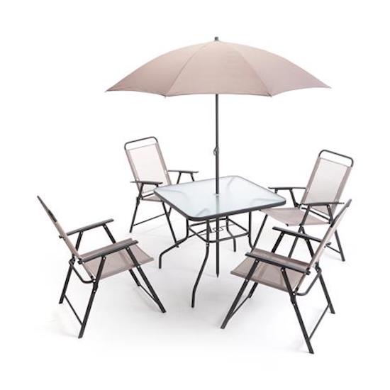 Ensemble de jardin en fer et textilène avec table, parasol et 4 chaises pliantes Taddei Savona