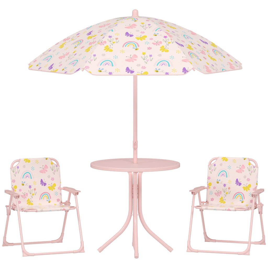 Set da Giardino per Bambini 2-5 Anni con Tavolino 2 Sedie e un Ombrellone Rosa