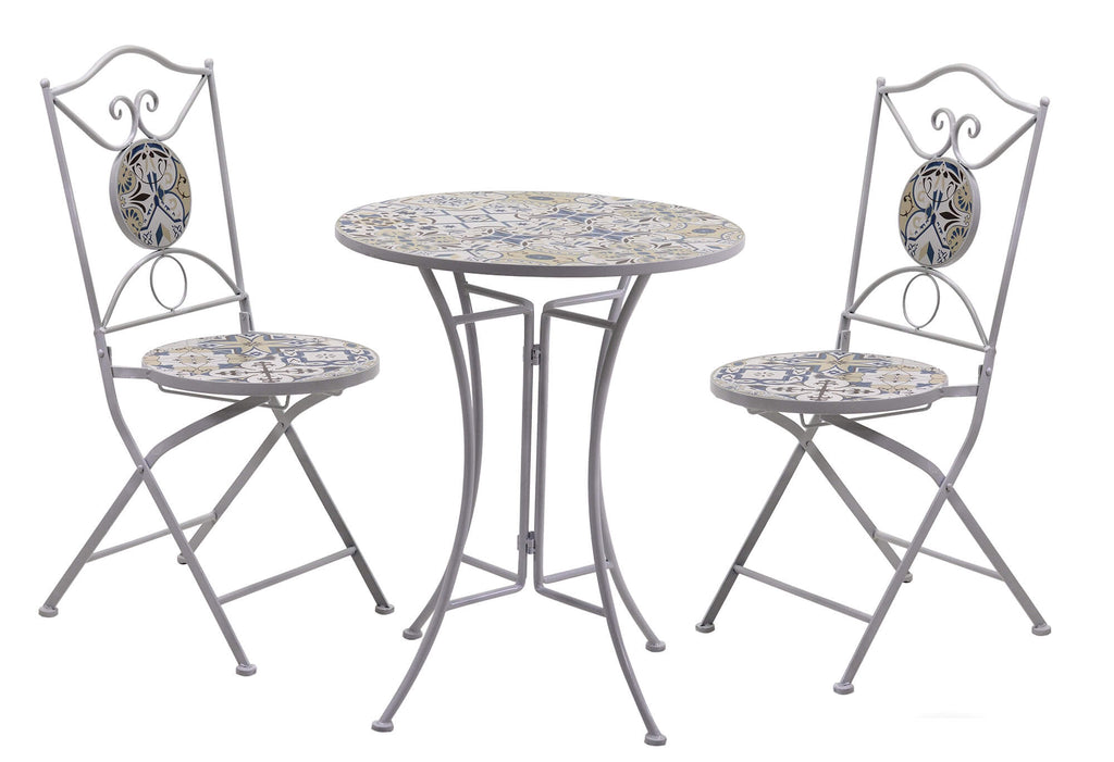 Salon de jardin pliable en métal avec table et 2 chaises Gallipoli Blanc