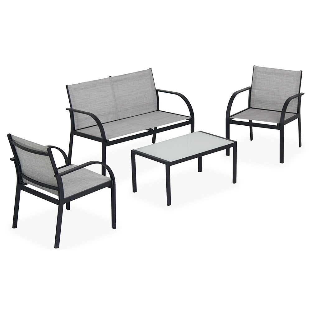 Ensemble de jardin table 2 fauteuils et canapé en fer noir Ranieri Ankara