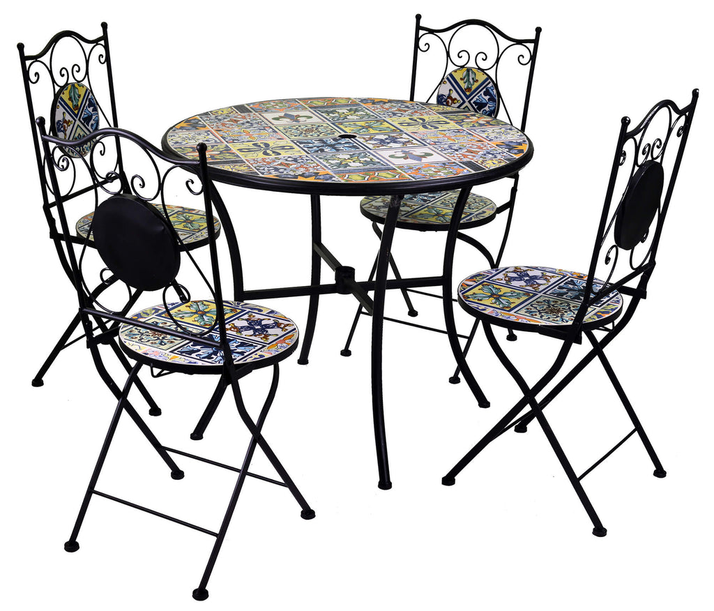 Ensemble de jardin composé d'une table et de 4 chaises en métal et mosaïque Trapani noire