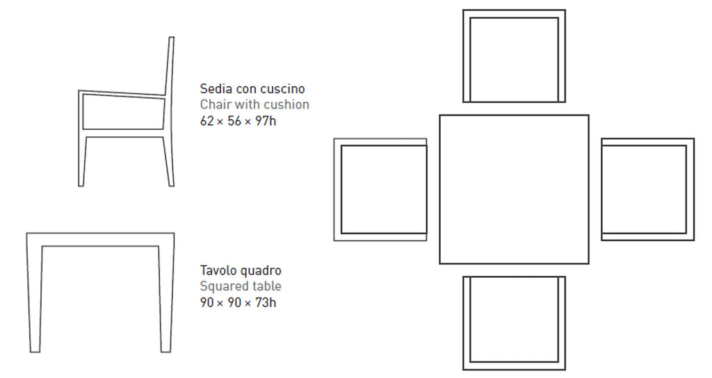 - Dimensions de la table (LxPxH) : 90 x 90 x 73 cm
