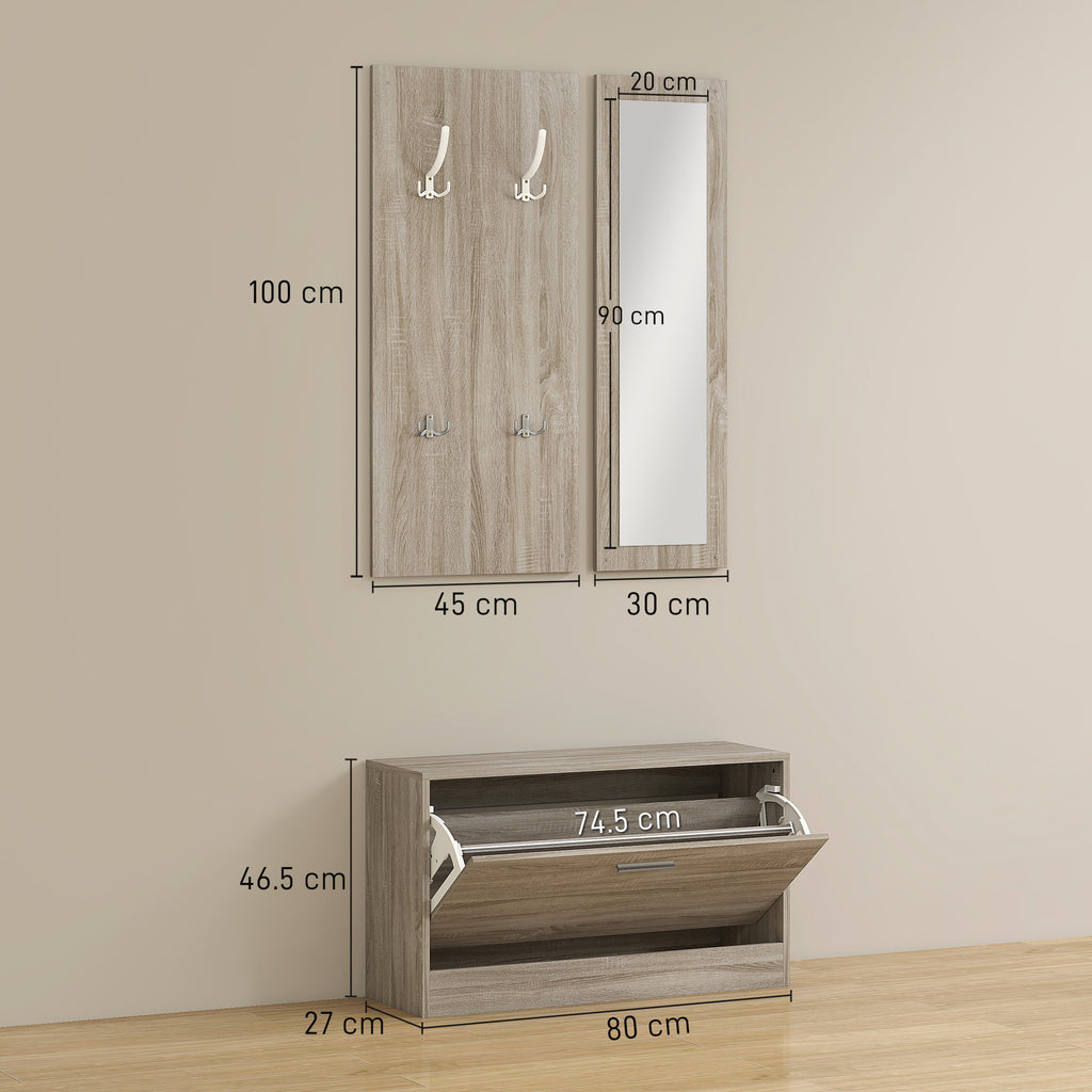 - SET 3 IN 1: Il nostro set da ingresso è composto da un mobile scarpiera, uno specchio verticale e un pratico appendiabiti dove riporre cappotti e berretti