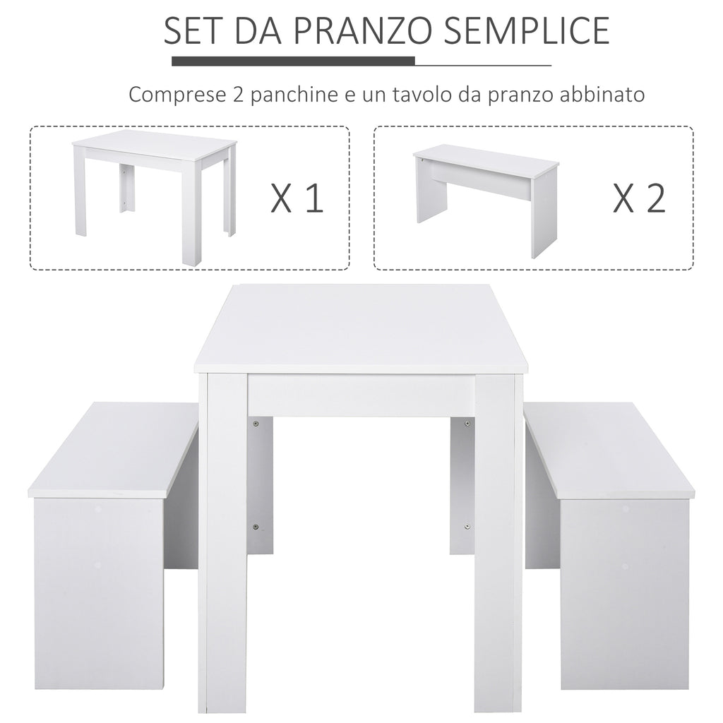 Ensemble table et 2 bancs de salle à manger en aggloméré blanc